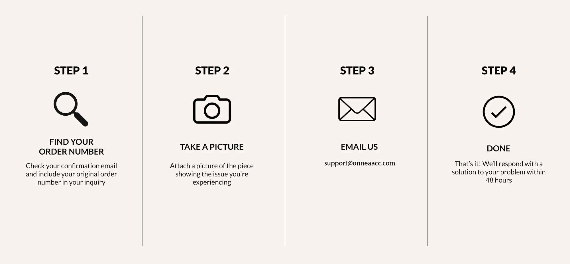 Our dedicated support team will review your claim and guide you through the next steps. We aim to resolve any issues promptly and satisfactorily, ensuring that your experience with Onnea remains nothing short of exceptional.